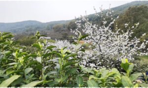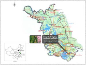 Dong Ting Bi Luo Chun is produced in Dongting Mountain, Wuzhong District, Suzhou City. Dongting Mountain is separated into two sections: east and west. East Mountain is a peninsula surrounded on three sides by water, whereas West Mountain is an island in Taihu Lake. The temperature here is warm and humid, with lots of sunshine, making it ideal for producing tea plants. Yet, plenty of sunshine and rain are insufficient to make Biluochun in Dongting Mountain stand out. Wuzhong’s east and west mountains not only yield high-quality Dongting Biluochun, but also the well-known loquat, bayberry, and Dongting tangerine. Tea trees and fruit trees such as plum, orange, and loquat are planted alternately. Local people pick tea in March and April, loquat in May, and bayberry in June. Natural decaying fruits and residual leaves provide excellent nutrients for tea trees. Furthermore, the big fruit trees protect the short tea trees from direct sunlight, allowing the tea buds to keep as much umami flavor as possible. This practice of growing tea and fruit trees is one of the main reasons why Biluochun in Dongting Mountain has natural flowery and fruity aromas.