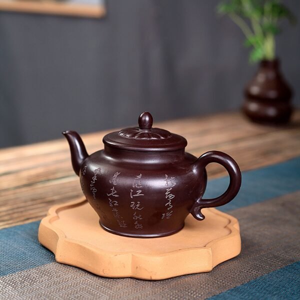 [Size] Total length 16.4 cm Total height 9.4 cm Diameter 5.8 cm [Introduction to the work] The work is profound, elegant, meticulously crafted, complete in form, dignified and stable in shape, coordinated in proportion, rigorous in structure, and moist in clay color. The performance of the craftsmanship is in line with the traditional basic skills of purple clay. The body of the pot has a delicate feel and is comfortable to touch, and the shape is simple and rustic.